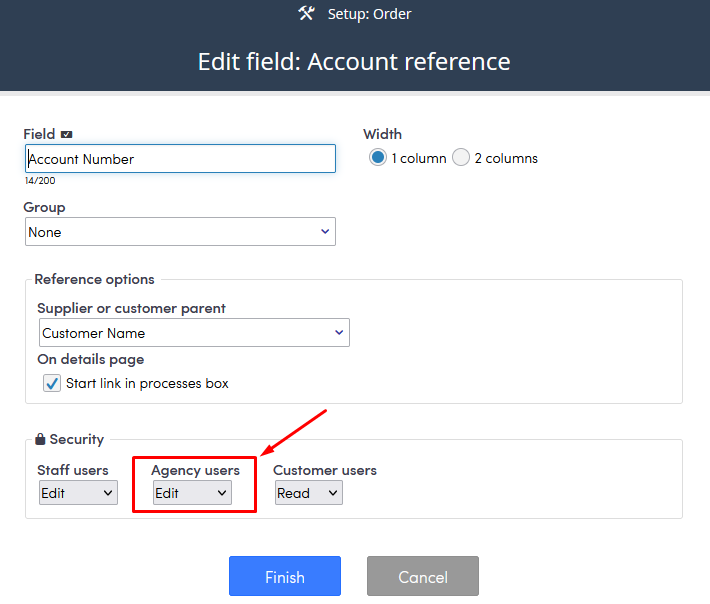 Customer Contacts: The customer page stores primary contact information. This setting will change the permissions for all agent user allowing either hidden, read, or edit access.